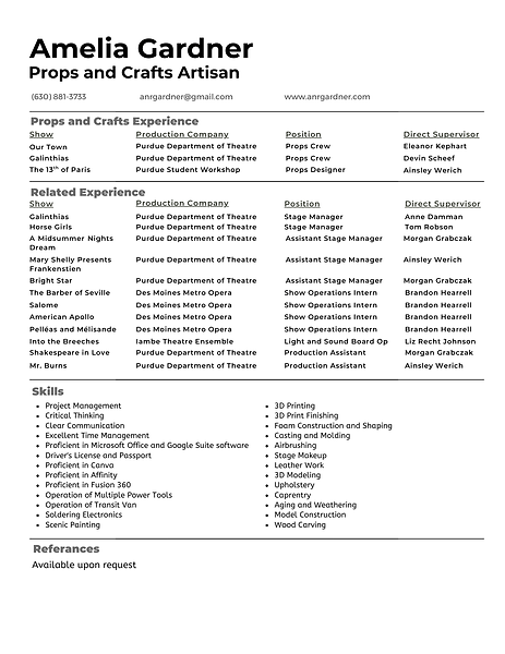 Props/Crafts Experience